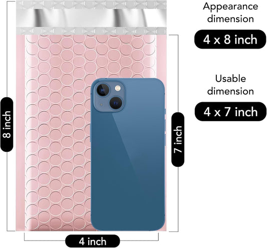 Fuxury Small Bubble Mailers 4x8" 100 Pack Light Pink Bubble Mailer Usable Size 4x7" Self Seal Padded Envelopes Mother's Day Gifts Mailing Envelopes Bubble Padded for Shipping