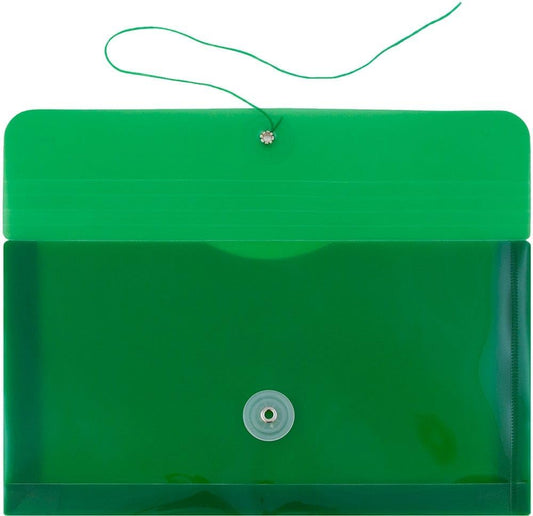 JAM PAPER Plastic Envelopes with Button & String Tie Closure - #10 Business Booklet - 5 1/4 x 10 - Green - 3/pack