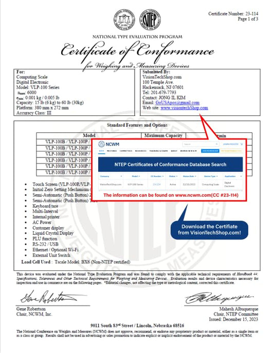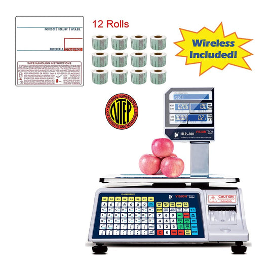 VisionTechShop VLP-100B Label Printing Scale, Capacity 30/60lb Readability 0.01/0.02lb, NTEP Legal for Trade, English, Spanish Available