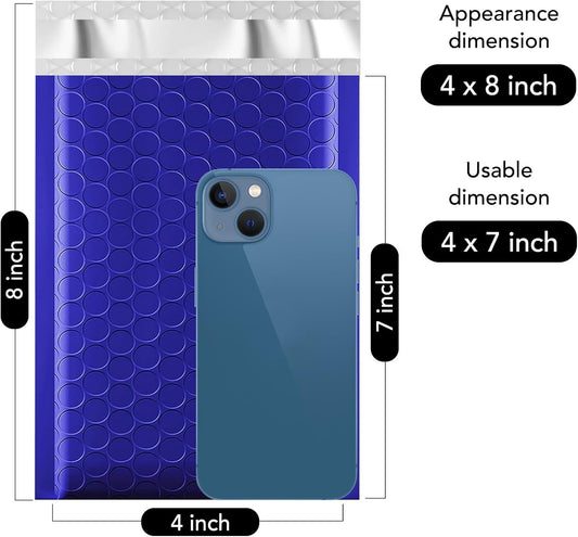 Fuxury 100Pcs 4x8 Bubble Mailers Royal Blue Shipping Padded Envelopes Usable Size 4x7' Waterproof Mailing Envelopes Bubble Padded for Mailing,Packaging, Small Business