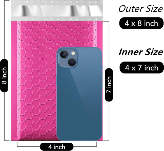 Fuxury Bubble Mailers 4x8" 800 Pack Pink Bubble Mailers Usable Size 4x7” Small Padded Envelopes Waterproof Mailing Envelopes Bubble Padded