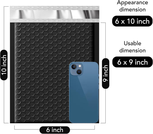 Fuxury Bubble Mailers 6x10" 100 Pack Black Padded Envelopes Usable Size 6x9" Thick Mailing Envelopes Bubble Opaque Padded Mailers Shipping Bags for Mailing Jewelry Makeup Small Business#0