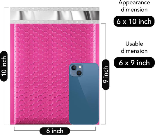 Fuxury Bubble Mailers 6x10" 100 Pack Pink Thick Padded Envelopes Usable Size 6x9" Mailing Envelopes Bubble Padded, Shipping Bags for Mailing,Packaging, Small Business, Boutique, Bulk #0
