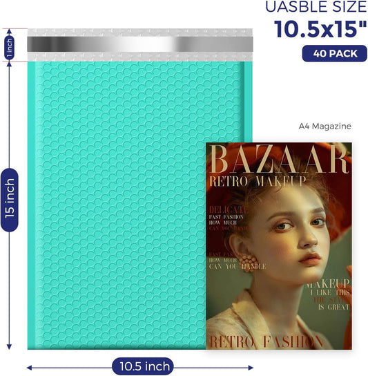 Fuxury Bubble Mailers 10.5x16 Inch 25 Pack Self Seal Padded Envelopes Large Shipping Envelopes Waterproof Padded Mailers Bubble Bags for Mailing, Packaging, Small Business, Teal #5