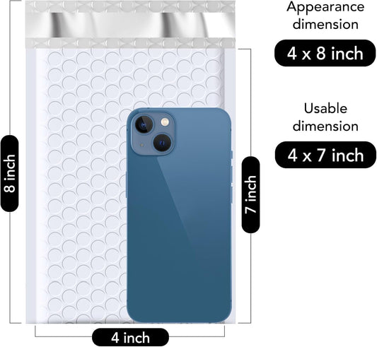 Fuxury Bubble Mailers 4x8" 800Pcs Bulk, Waterproof Padded Envelopes Usable Size 4x7", Cushioning Small Mailing Envelopes, Padded Mailers Shipping Bags for Small Business Packing, #000 White