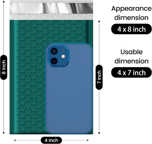 Fuxury Bubble Mailers 4x8" 800 Pack Forest Green Bubble Mailer Bulk Usable Size 4x7" Padded Envelopes Waterproof Shipping Envelopes Padded Mailers for Small Business Mailing #000