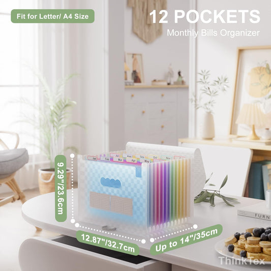 ThinkTex Accordion File Organizer, 12 - Pocket Expanding File Folders for Paper Receipts, Bills&Taxes Organizer, Portable Letter/A4 Size Document Holder for School, Office, Home with Colorful tabs