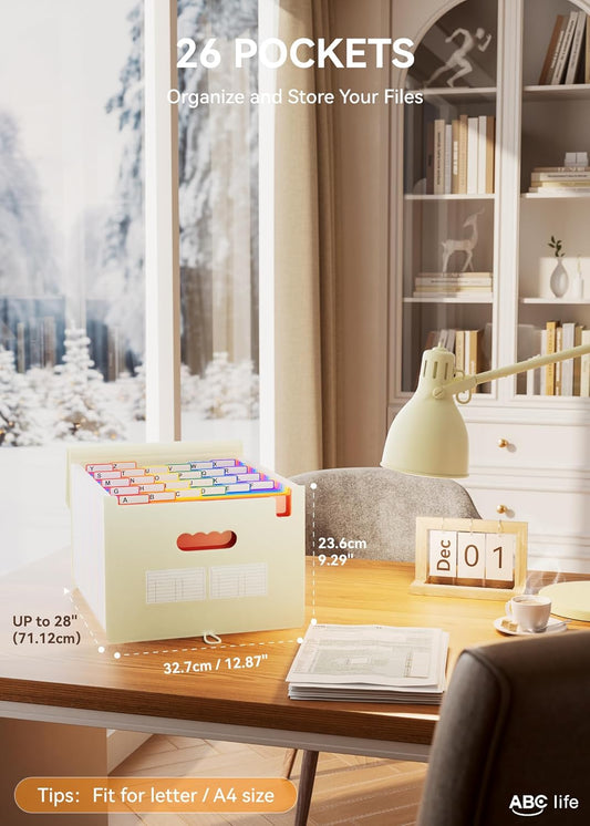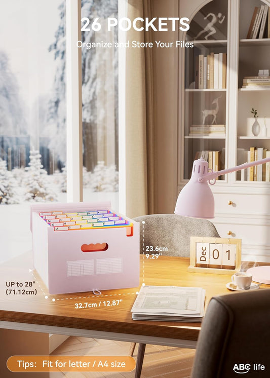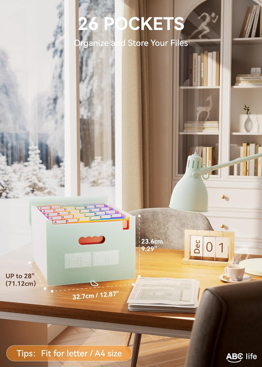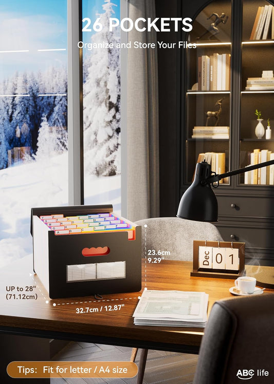 ABC life 26 Pockets Accordion File Organizer, Expanding File Folders, Portable Monthly Bill Receipt Organizer with Colorful A-Z Tabs, Desktop Folders Letter A4 Paper Document Storage for Home Office