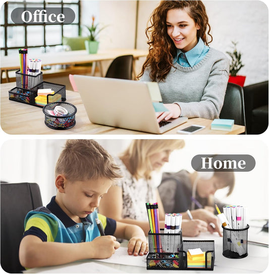 Desk Pencil Holders Desk Organizer Office Supplies Caddy with Sticky Notes Holder for Office School Home 3 Compartments Black