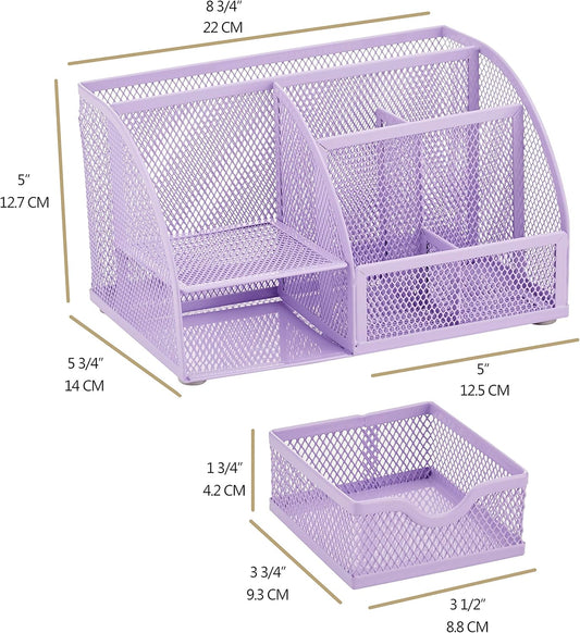 Annova Mesh Desk Organizer Office with 7 Compartments + Drawer/Desk Tidy Candy/Pen Holder/Multifunctional Organizer (Light Purple)