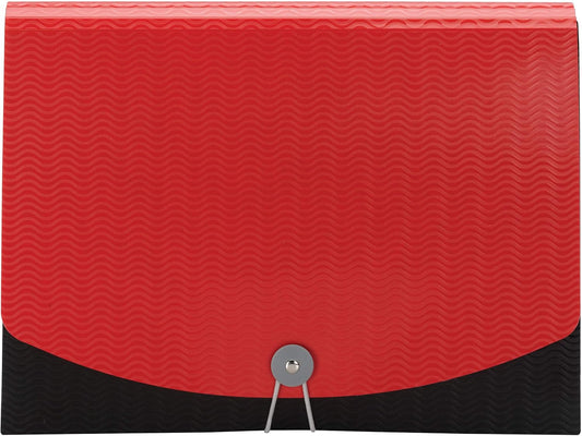 Smead Poly Expanding File, 6 Dividers, Flap and Cord Closure, Letter Size, Wave Pattern Red/Black (70884)