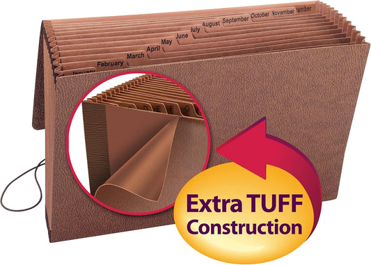 Smead TUFF Expanding File, 12 Pockets, Monthly (Jan.-Dec.), Flap and Cord Closure, Legal Size, Redrope (70390)