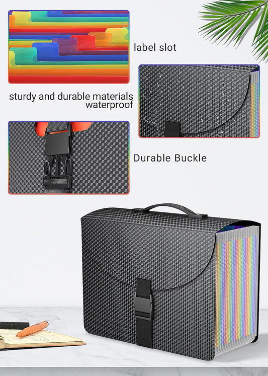 Expanding File Folders,Accordion File Organizer with Handle,13 Pockets Expandable Filing Folders,Tabs Included Filing Box,Adjustable Strap,Bill Documents Organizer,A4/Letter Size,Diamond