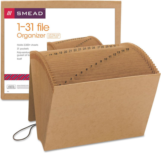 Smead Expanding File with Flap and Cord Closure, 31 Pockets, Daily (1-31), Letter Size, Kraft (70168) (Pack of 1)