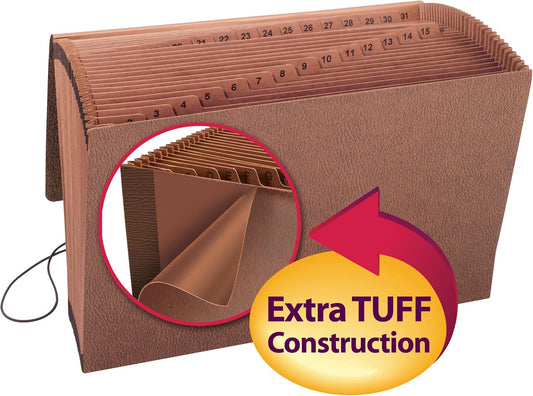 Smead TUFF Expanding File, 31 Pockets, Daily (1-31), Flap and Cord Closure, Legal Size, Redrope (70369)