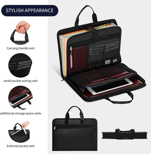Extra Large Legal Size/Foolscap 12 Pockets Accordion File Organizer with Handle, TRANBO Portable Expanding File Folder, Expandable Plastic Document Organizer for Travel School Office - Black