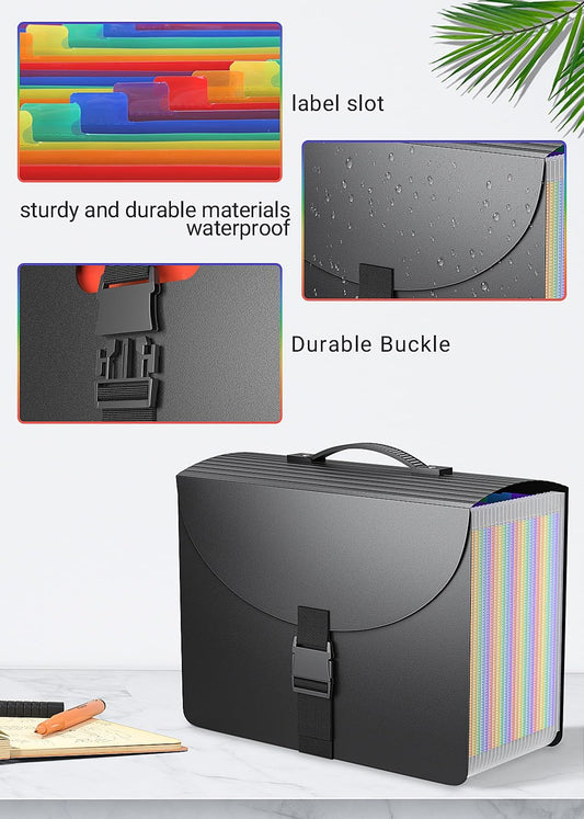 13 Pocket Expanding File Folder Accordian File Organizer, A4 Letter Size Paper Document Receipt Holder for School Office Supplies, Black