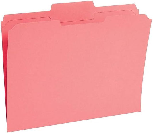 Staples 508952 Colored File Folders w/Reinforced Tabs Letter 3 Tab Pink 100/Box
