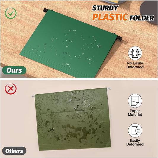 Plastic Hanging File Folders,Letter Size,Reinforced Hang Folders,Standard File Folders for Filing Cabinet,Plastic Hanging Folders,1/5-Cut Tabs,Designed for Home and Office,Green,12 Pack