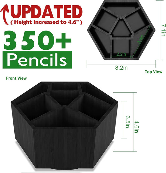 Bamboo Art Supply Organizer, Back to School Supplies, Hold 350+ Pencils, Rotating School Supplies Holder for Pen, Colored Pencil, Art Brushes, Desktop Storage Caddy for Classroom & Art Studio