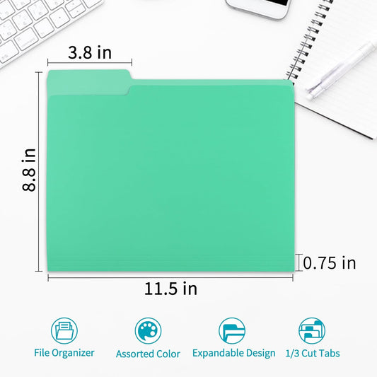 100 Packs File Folder,Light Green File Folders Letter Size,1/3-Cut Tabs,8.5x11 Inch File Folders for Office,School and Home,Organizer Documents