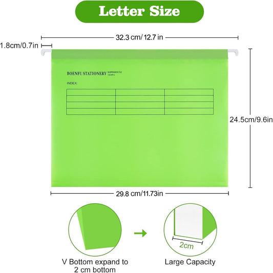 BOENFU 24 Pack Colored Hanging File Folders Letter Size Plastic File Folders with Adjustable Tabs, 2 Markers, Hanging Organizer File Folders for Efficient Filing
