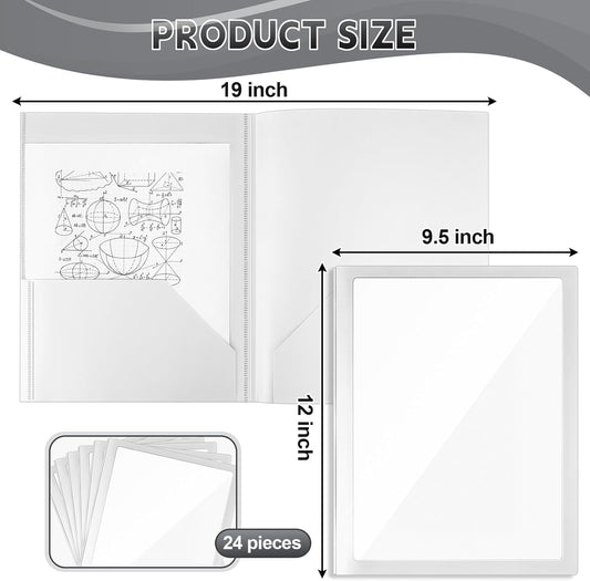 Teling 24 Pcs Plastic Folders with Front Clear Pocket and Business Card Holder 2 Pocket Folders Letter Size Paper for School Office Supplies Nice Gift for Christmas New Year School Supply (White)