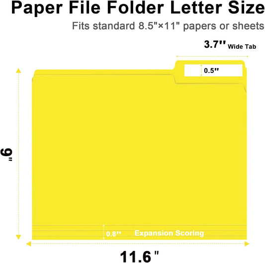 File Folder, RAZCC 150 Pack 1/3 Cut Tab File Folders Letter Size, Yellow, Folders with Tab, Great for Organizing and Easy File Storage