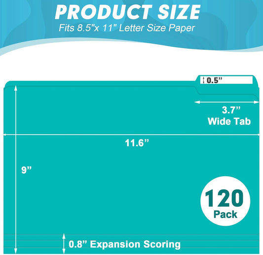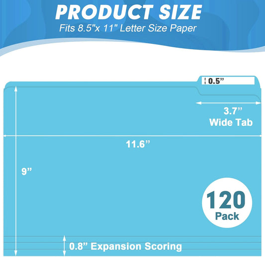 120 Pack Two-Tone Color File Folders, Bulk Letter Size Folders with 6 Assorted Colors, 1/3-Cut Tabs, School Office Supplies