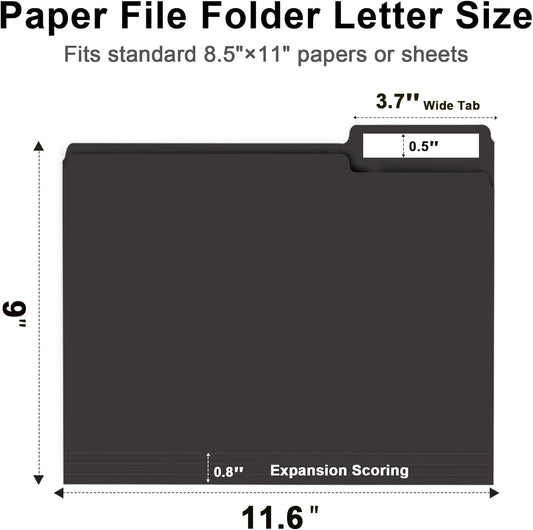 File Folder, RAZCC 150 Pack 1/3 Cut Tab File Folders Letter Size, Black Folders for Dcouments, Folders with Tab Great for Organizing and Easy File Storage