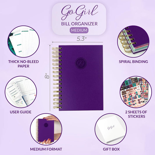 GoGirl Budget Planner & Monthly Bill Organizer – Monthly Financial Book with Pockets. Expense Tracker Notebook Journal, Compact (Purple)