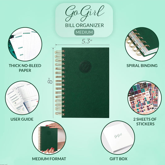 GoGirl Budget Planner & Monthly Bill Organizer – Monthly Financial Book with Pockets. Expense Tracker Notebook Journal, Compact (Dark Green)