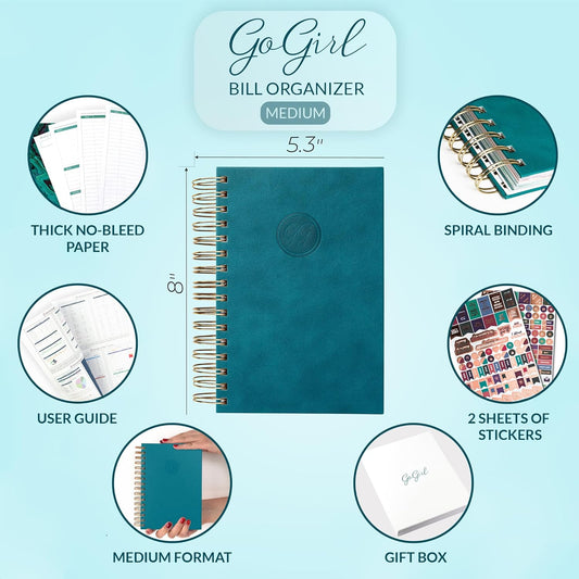 GoGirl Budget Planner & Monthly Bill Organizer – Monthly Financial Book with Pockets. Expense Tracker Notebook Journal, Compact (Dark Teal)