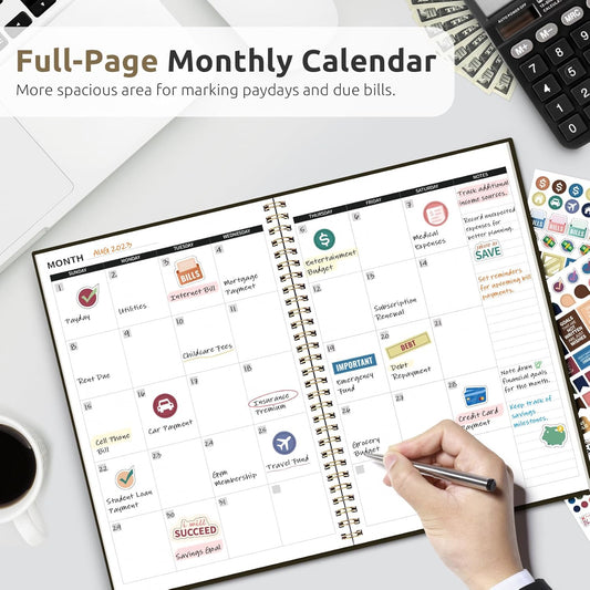 GoGirl Budget Planner & Monthly Bill Organizer – Monthly Financial Book with Pockets. Expense Tracker Notebook Journal, Large (Black)