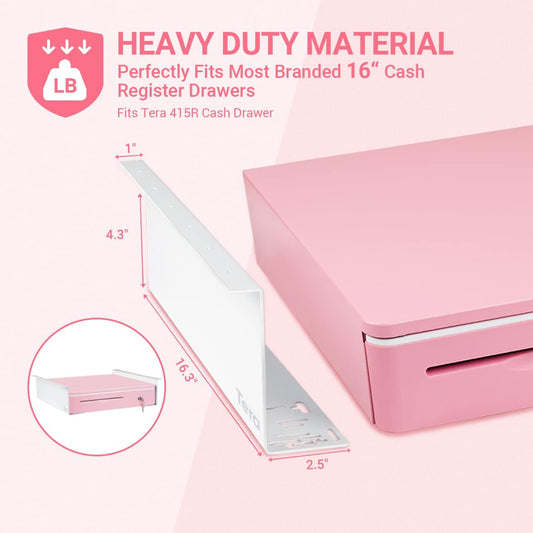 Tera 16" Auto Open Cash Register Drawer with Universal Under Counter Mounting Metal Brackets (Round Corner) Heavy Duty Insert Tray 5 Bill 8 Coin Removable Cash Tray for POS Small Businesses Store 405R