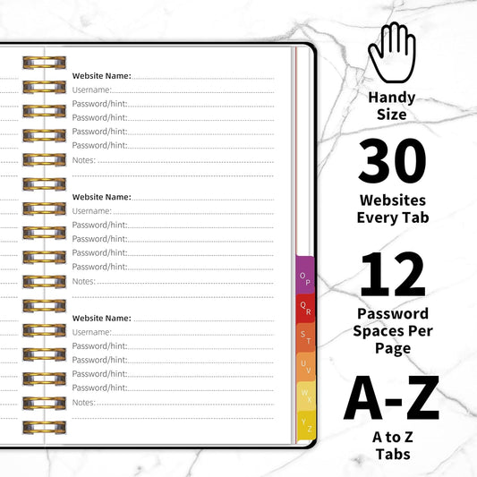 Password Book with Alphabetical Tabs, Password Keeper Book for Seniors, 5.8" X 8.2" Medium Size Password Notebook, Individual & Colorful Tabs, Spiral Hardcover Password Journal Logbook for Website Logins, Black