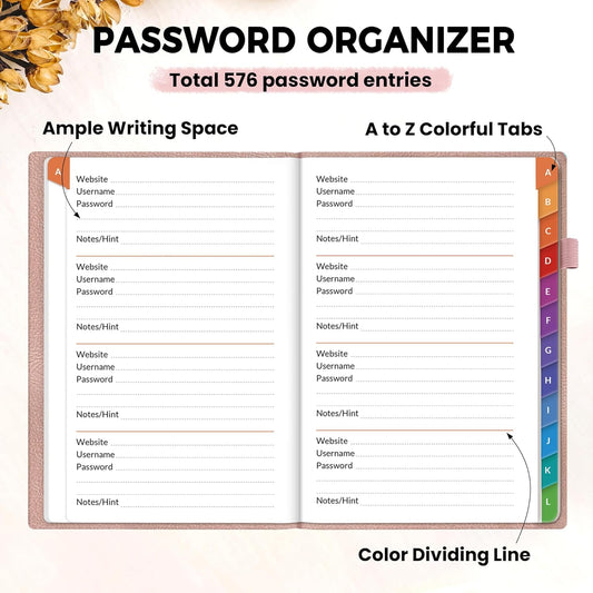 SUNEE Password Book with Colorful Alphabetical Tabs, Password Books for Seniors, Password Keeper Book for Computer and Internet Address Website Login, 5.3''x 7.7''- Rose Gold