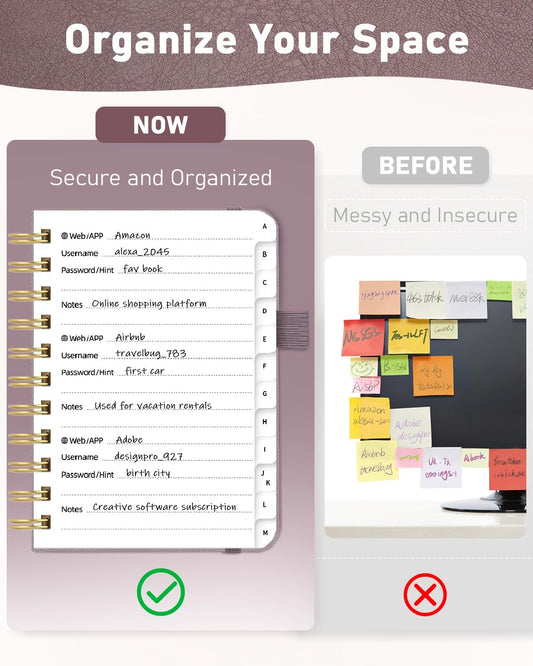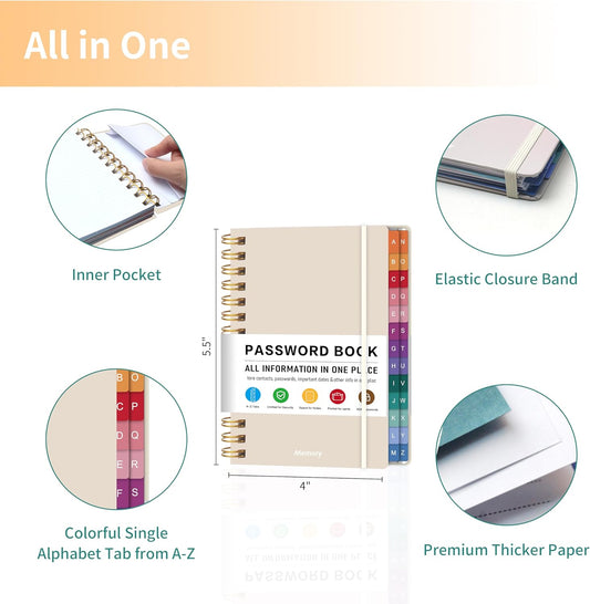 Password Book with Alphabetical Tabs, Internet Address and Password Keeper, A5 Size 8.3"x6" Password Notebook for Saving Internet Login, Username, Password Organizer for Computer & Website
