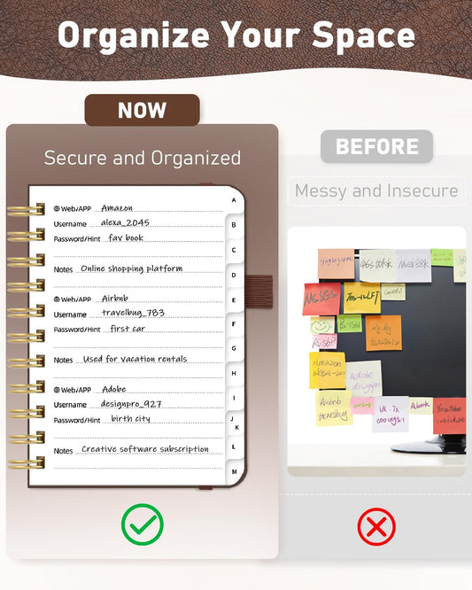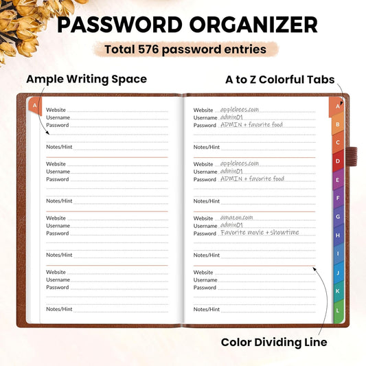 SUNEE Password Book with Colorful Alphabetical Tabs, Password Books for Seniors, Password Keeper Book for Computer and Internet Address Website Login, 5.3''x 7.7''- Brown