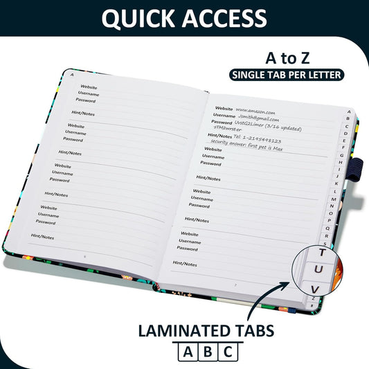 Password Book with Alphabetical Tabs, Hardcover Password Keeper, A5 Size 8.3"x6" Password Notebook for Saving Internet Login, Username, Password Organizer for Computer & Website