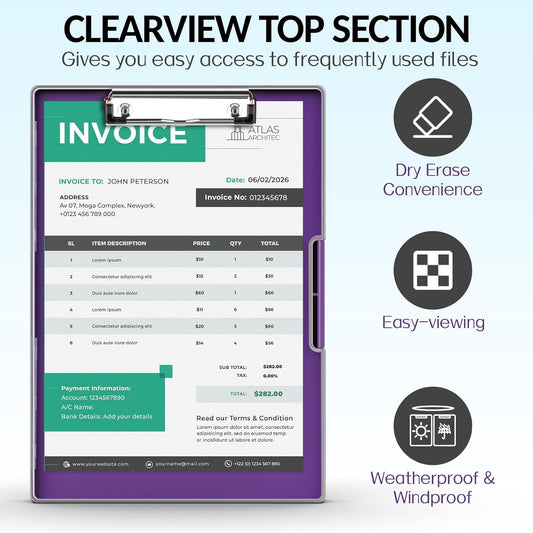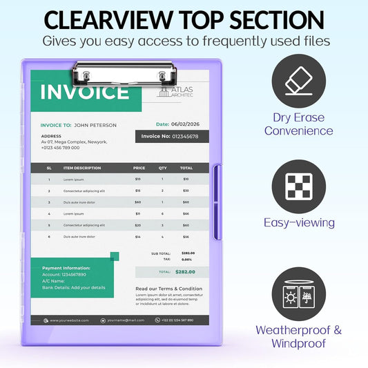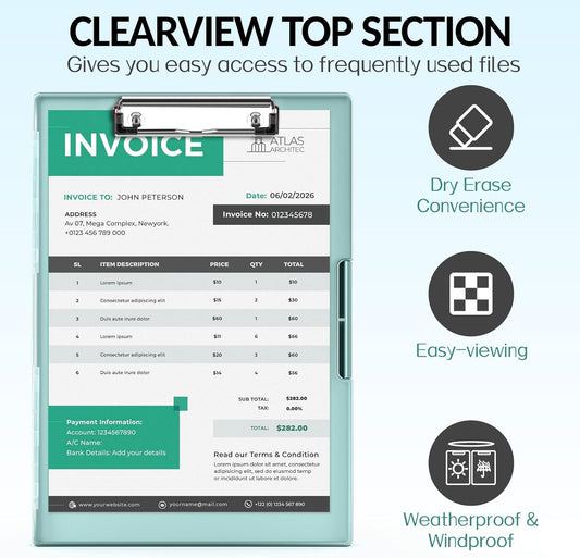 Sooez Clipboard with Storage, Heavy Duty Cleaview Clip Boards 8.5x11 with Dual Storage, Dry Erase Plastic Nursing Clipboard, High Capacity Clipboards Folder for Teacher Nurse, School & Office Supplies