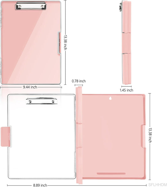 Clipboard with Storage,Heavy Duty Clip Boards 8.5x11 with 2 Storage Case,Clear Visible Top Panel Storage Clipboards,Side Opening Clip Boards,Nursing Clipboard Folder Case for Office Supplies-Pale Pink
