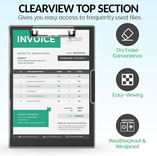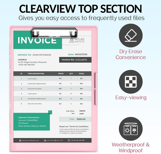 Sooez Clipboard with Storage, Heavy Duty Cleaview Clip Boards 8.5x11 with Dual Storage, Dry Erase Plastic Nursing Clipboard, High Capacity Clipboards Folder for Teacher Nurse, School & Office Supplies