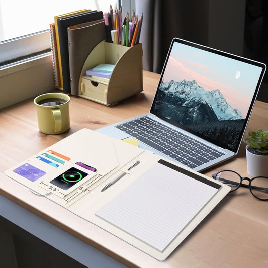 Ospelelf Foldable Clipboard Padfolio with Notepad 8.5 x 11, Faux Leather Business Clipboard Folio for Women Portfolio Organizer, Beige
