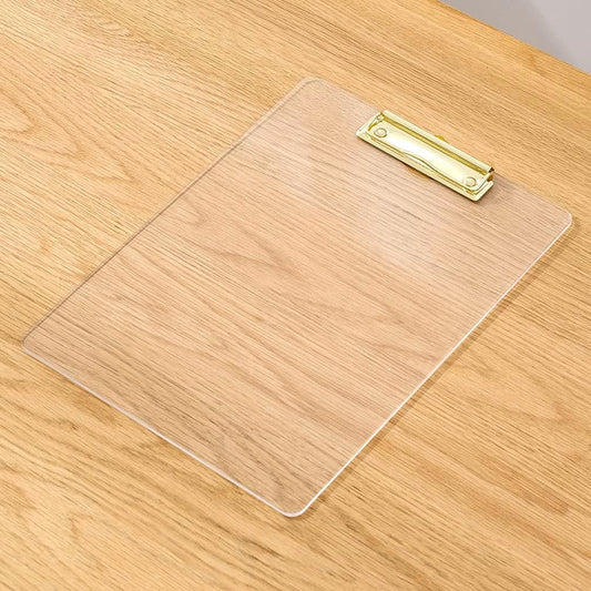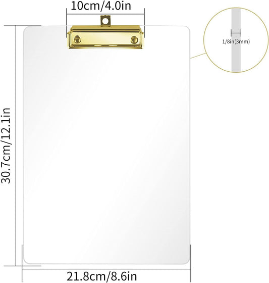UNIQOOO 2 Pack Thick Clear Acrylic Clipboard with Shiny Gold Finish Clip, Perfect for Modern Arts Lover and Style Expert, Calligrapher, Office, Seminars, Workshops, Home School, Classroom and Event