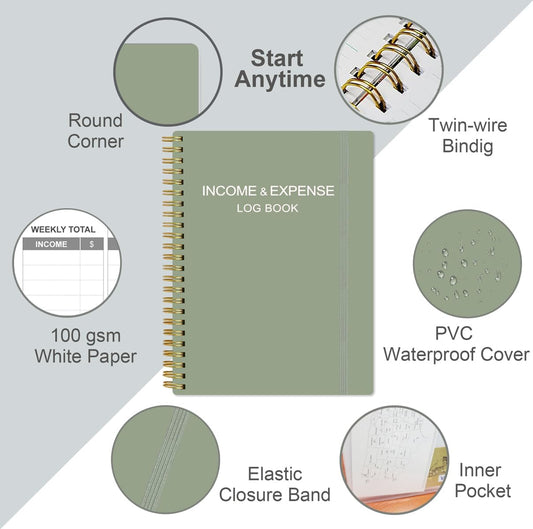 Heveboik Income & Expense Log Book - A4 Income and Expense Tracker for Small Business, Accounting Bookkeeping Tracking for Woman and Man, 8" x 10.5", Green
