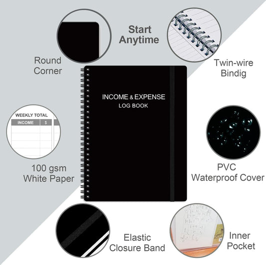 Heveboik Income & Expense Log Book - A4 Income and Expense Tracker for Small Business, Accounting Bookkeeping Tracking for Woman and Man, 8" x 10.5", Black