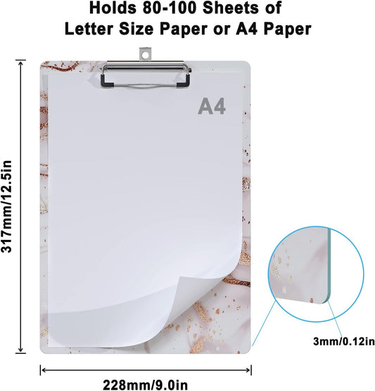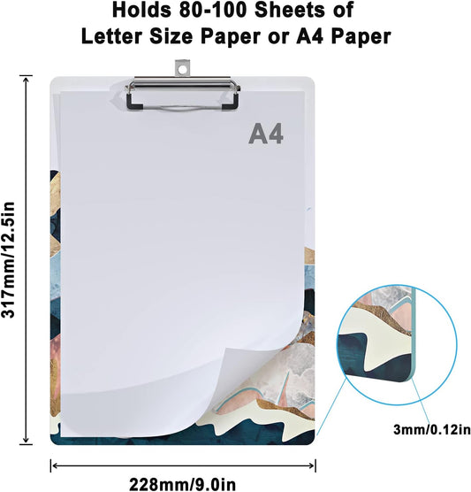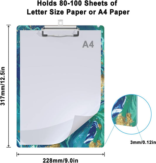 Clipboard Wood Design Decorative A4 Letter Size Clip Boards for Classroom Office, Standard Size 9" x 12.5" with Low Profile Metal Clip - Blue Gold Marble