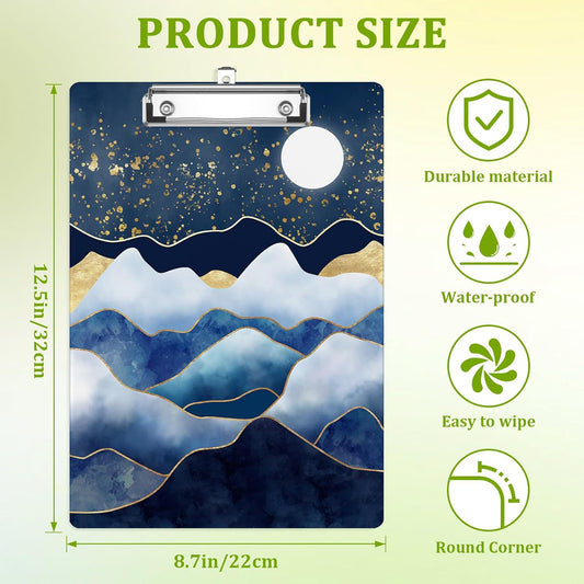 Vintage Mountain Landscape Clipboard,Decorative Acrylic Clipboard with Low Profile Metal Clip for Office,School,Teachers,Students Standard Letter Size 9x12.5