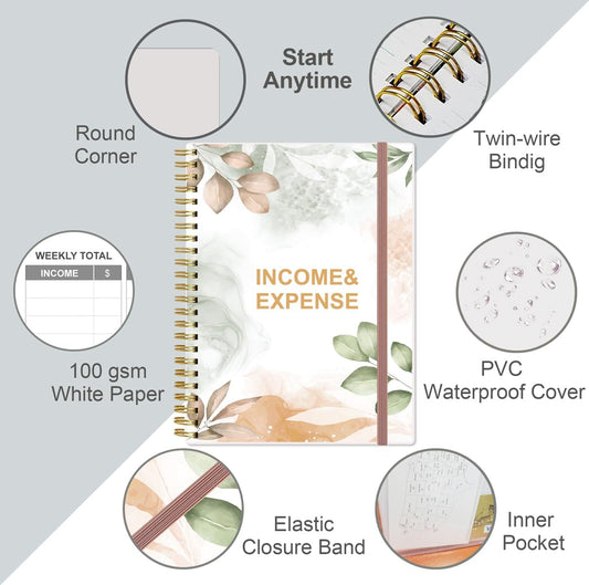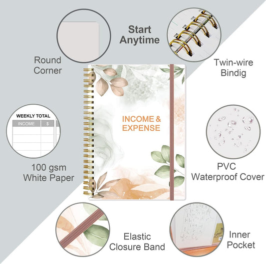 Heveboik Income & Expense Log Book - A5 Income and Expense Tracker for Small Business, Accounting Bookkeeping Tracking for Woman and Man, 5.8" x 8.3", Rose Leaf